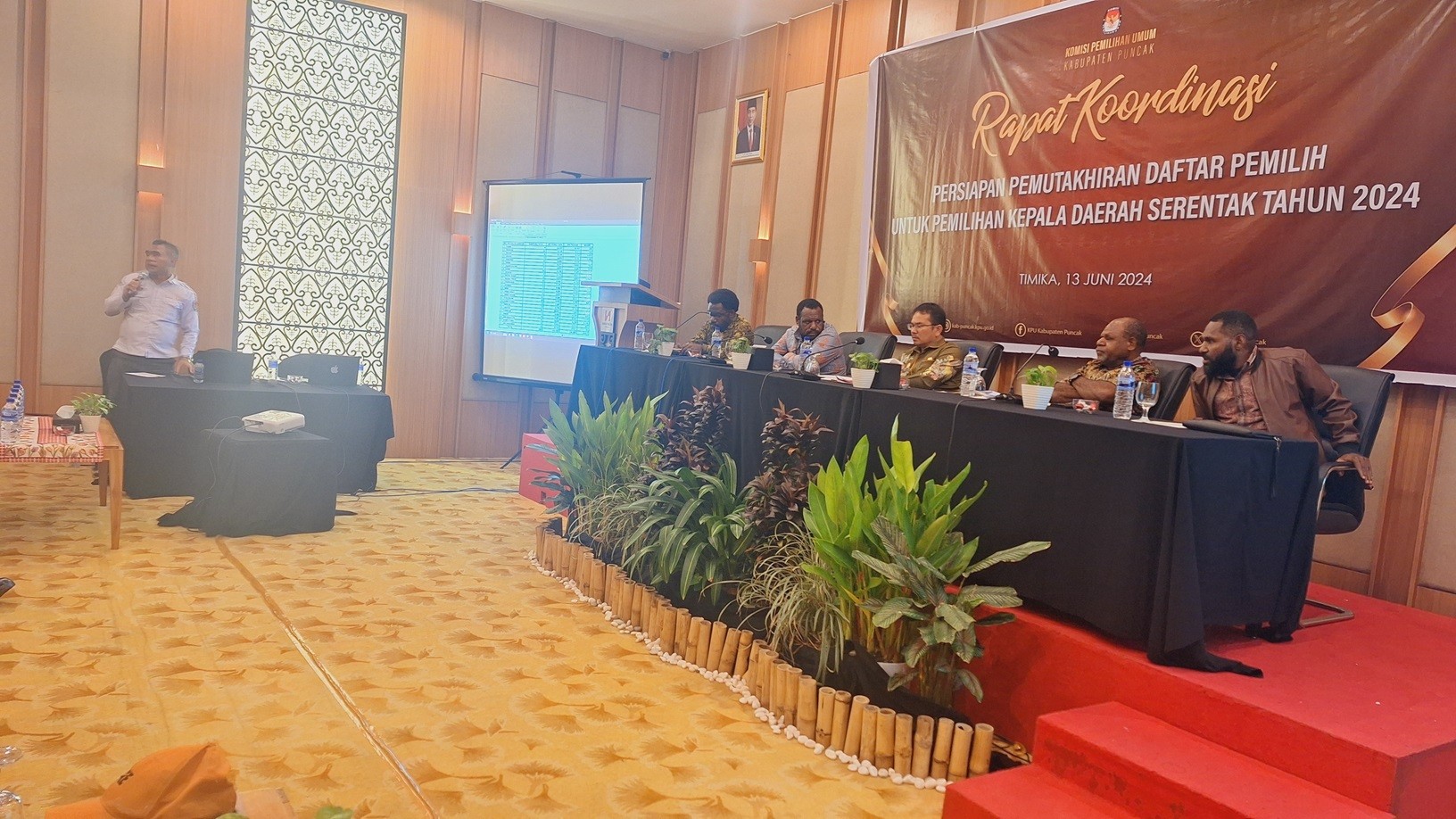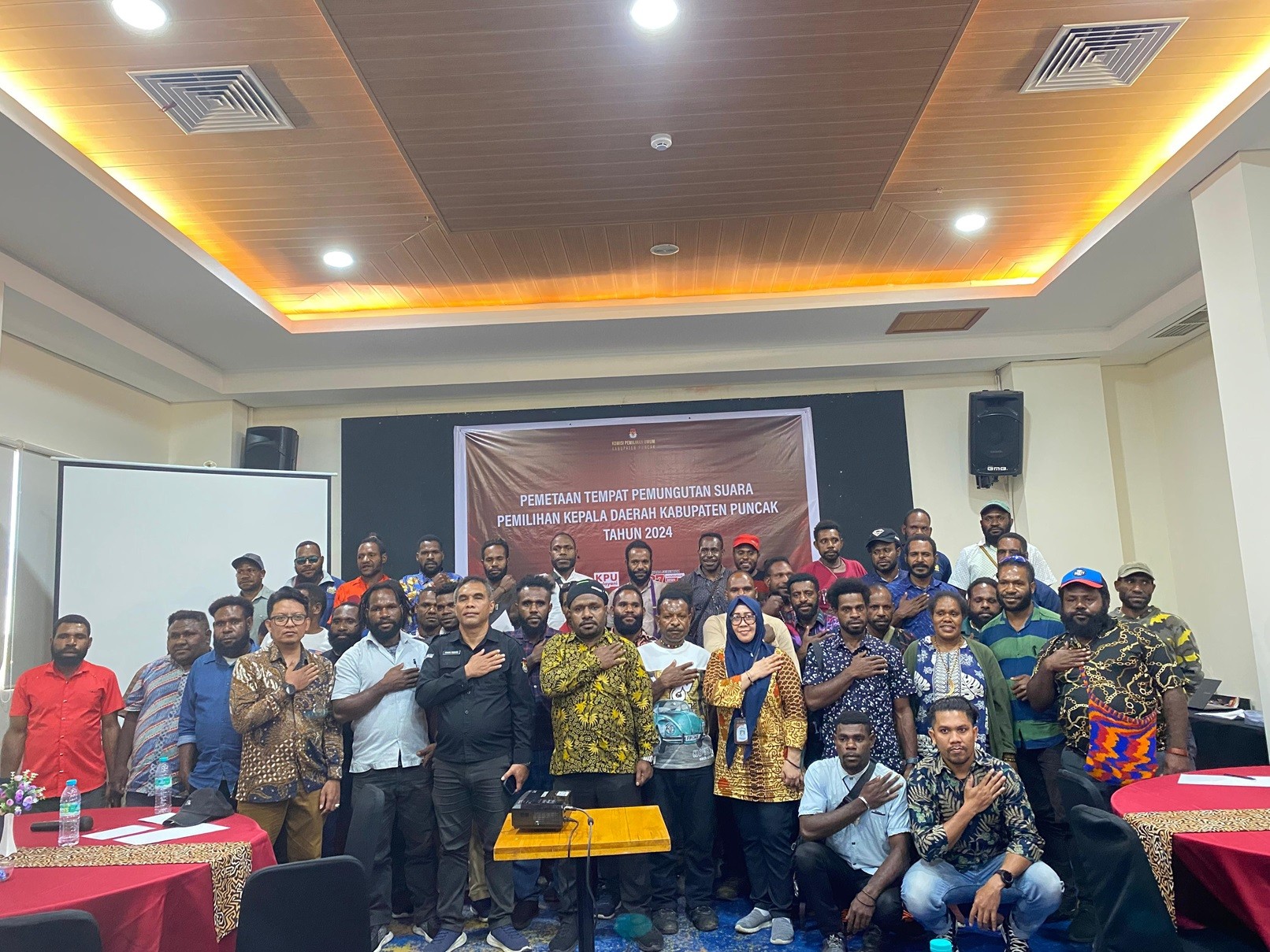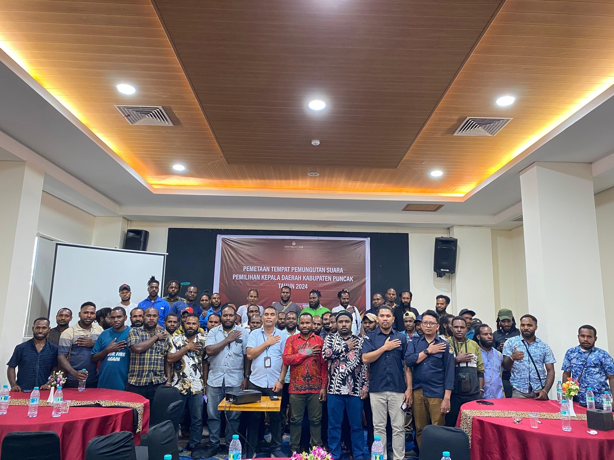 PUNCAK - Komisi Pemilihan Umum Kabupaten Puncak telah menerima daftar pemilih hasil sinkronisasi DP4 dari KPU RI pada tanggal 19 Mei 2024 sebanyak 156.863 Orang yang terdiri dari pemilih laki-laki sebanyak 82.488 orang dan pemilih perempuan sebanyak 74.375 Orang. dalam daftar pemilih tersebut terdapat penambahan 1.327 Orang dari jumlah Daftar Pemilih Tetap (DPT) PEMILU 2024 kemarin yaitu sebanyak 155.536 Orang. KPU Puncak juga telah melakukan pemetaan TPS bersama badan adhoc berdasarkan data tersebut.