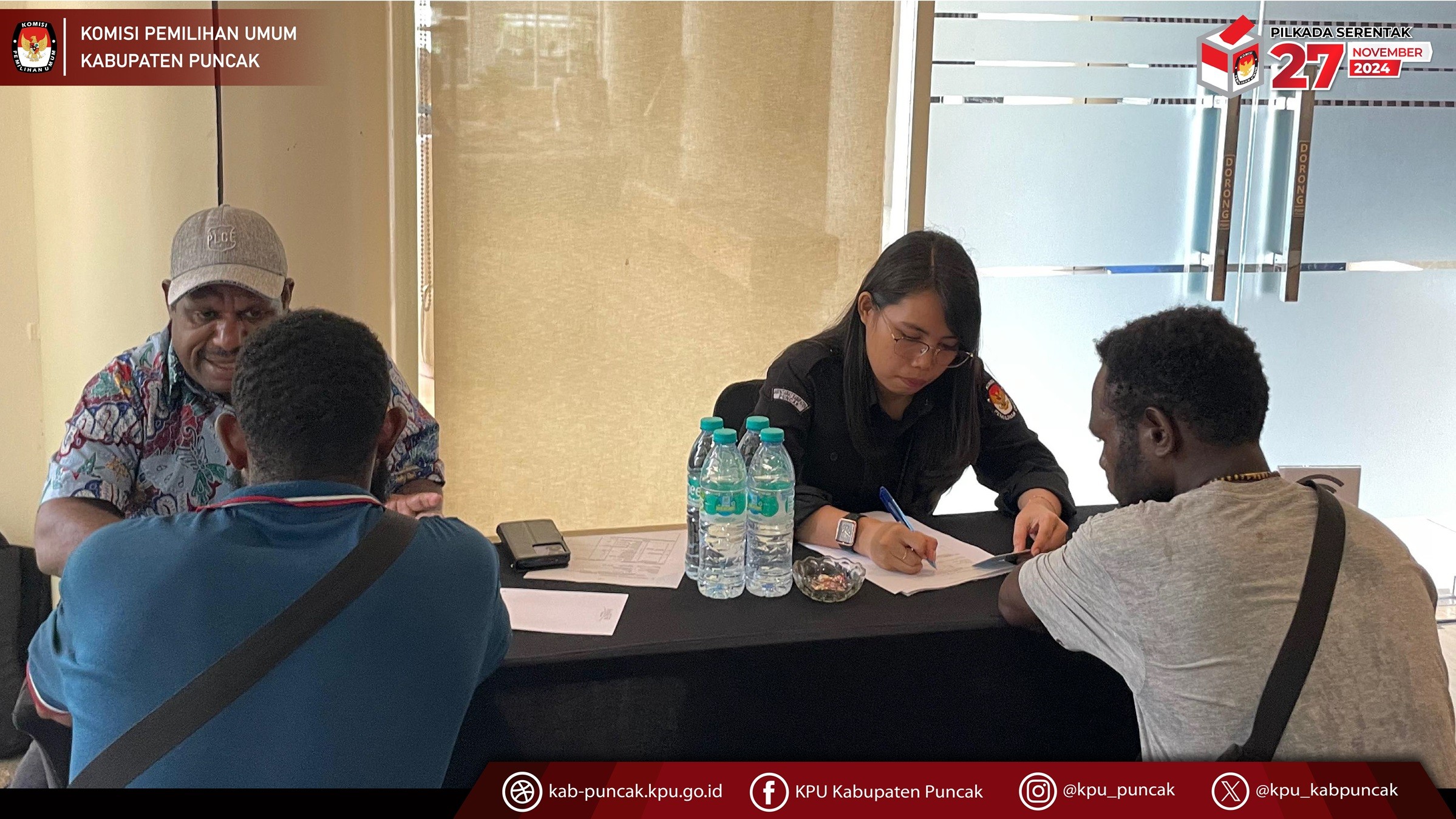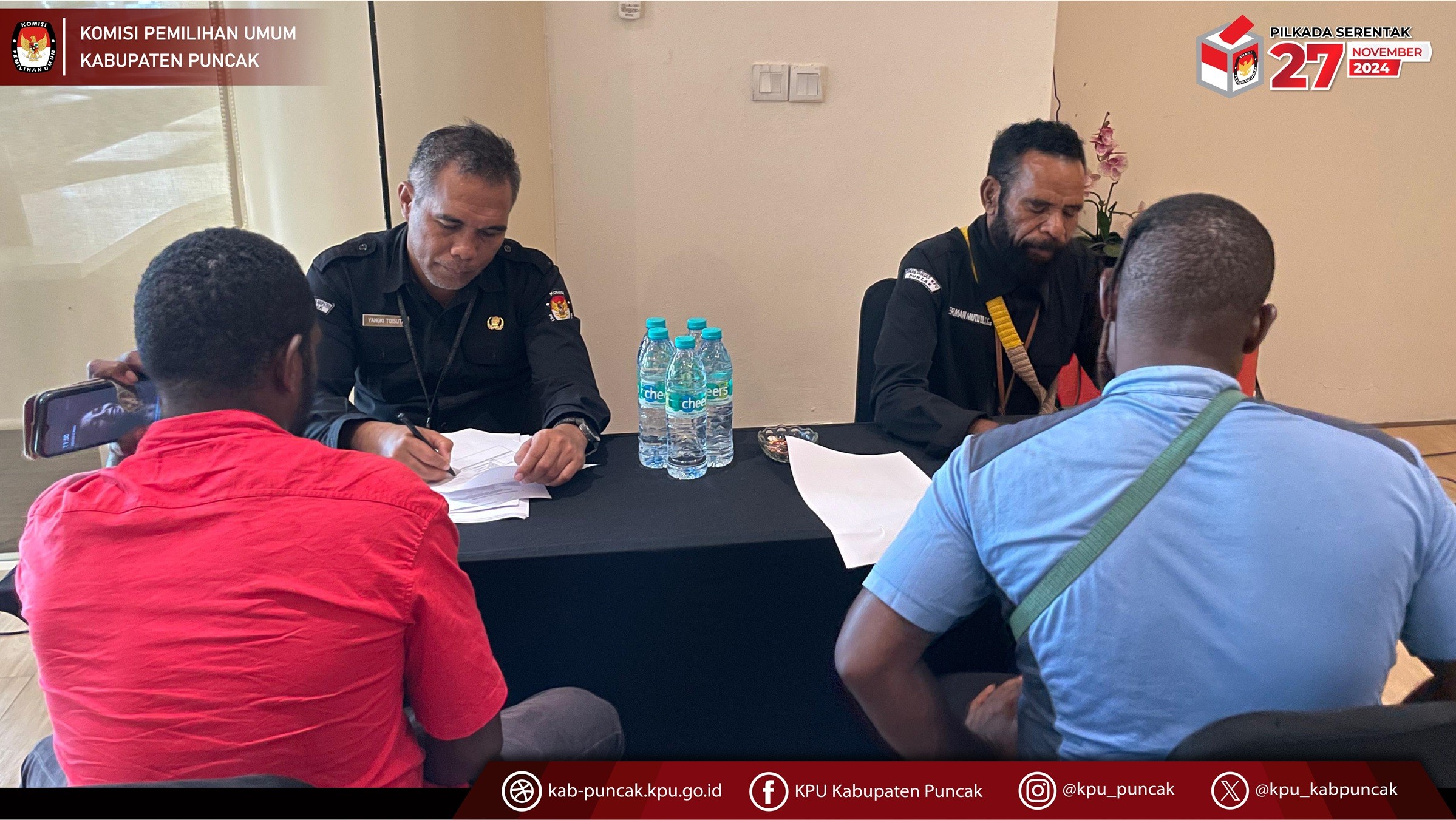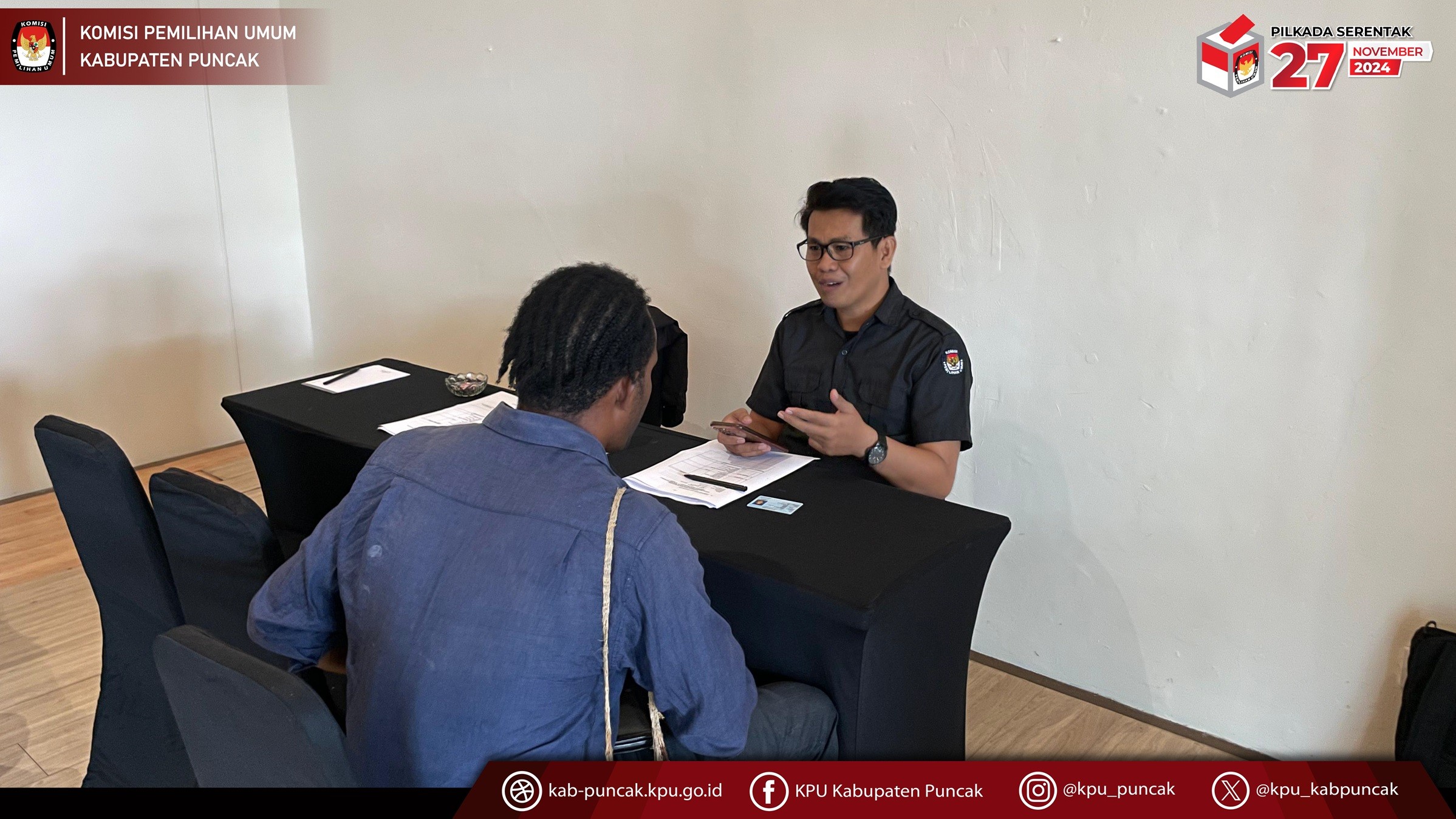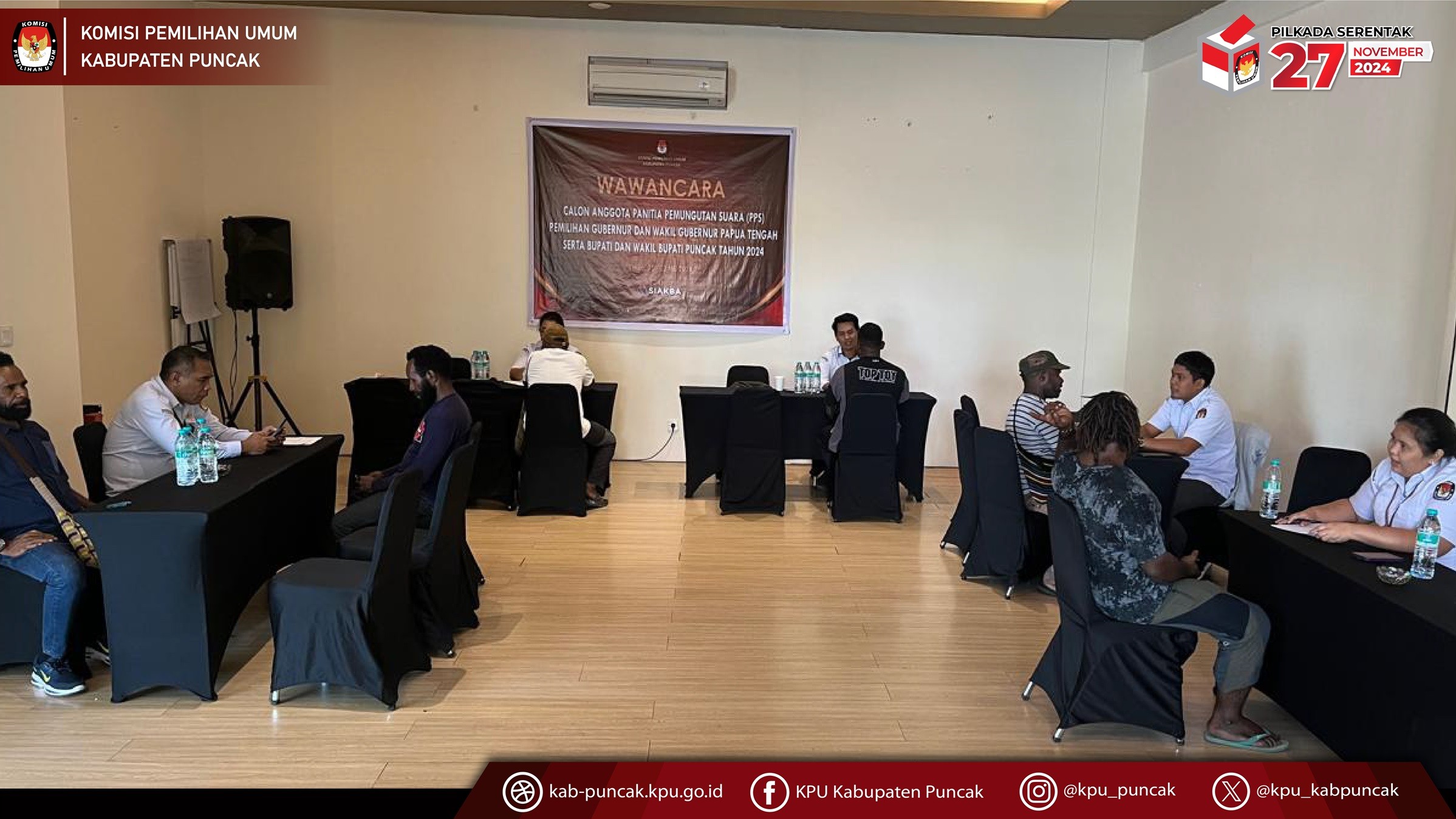 Kamis, 23 Mei 2024, Komisi Pemilihan Umum Kabupaten Puncak telah melaksanakan tes wawancara kepada calon anggota Panitia Pemungutan Suara (PPS) untuk pemilihan gubernur dan wakil gubernur Papua Tengah serta Bupati dan wakil Bupati Puncak Tahun 2024. tes wawancara calon anggota PPS dilaksanakan selama dua hari dimulai dari rabu tanggal 22 mei 2024 sampai kamis 23 mei 2024 di timika.