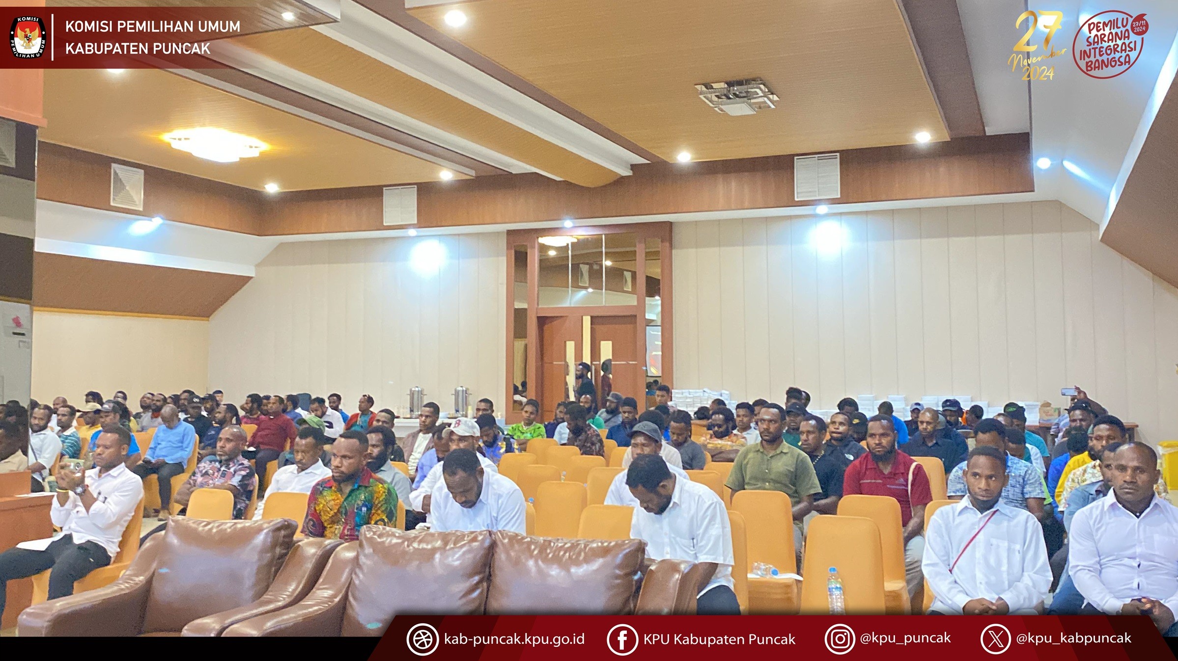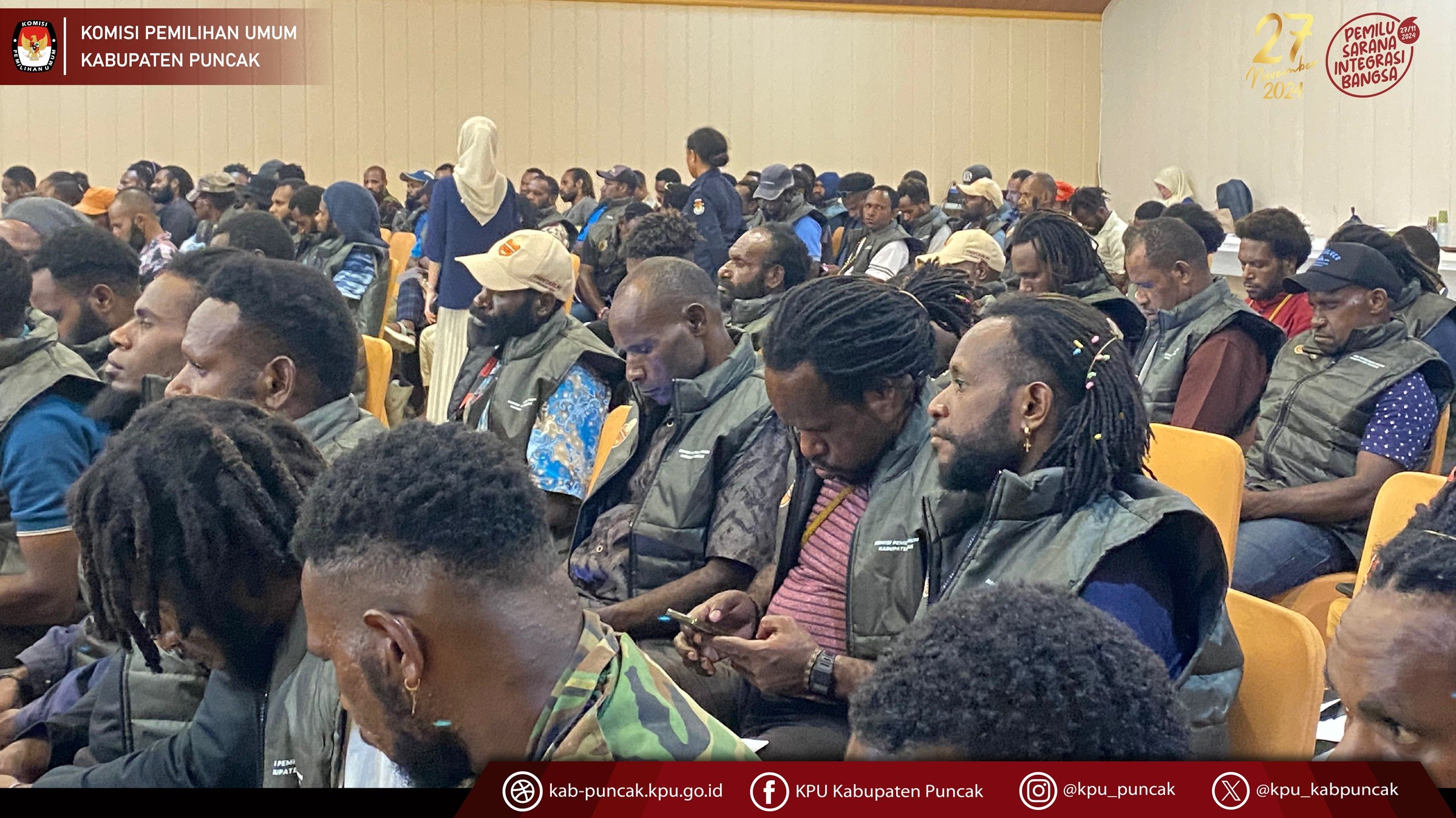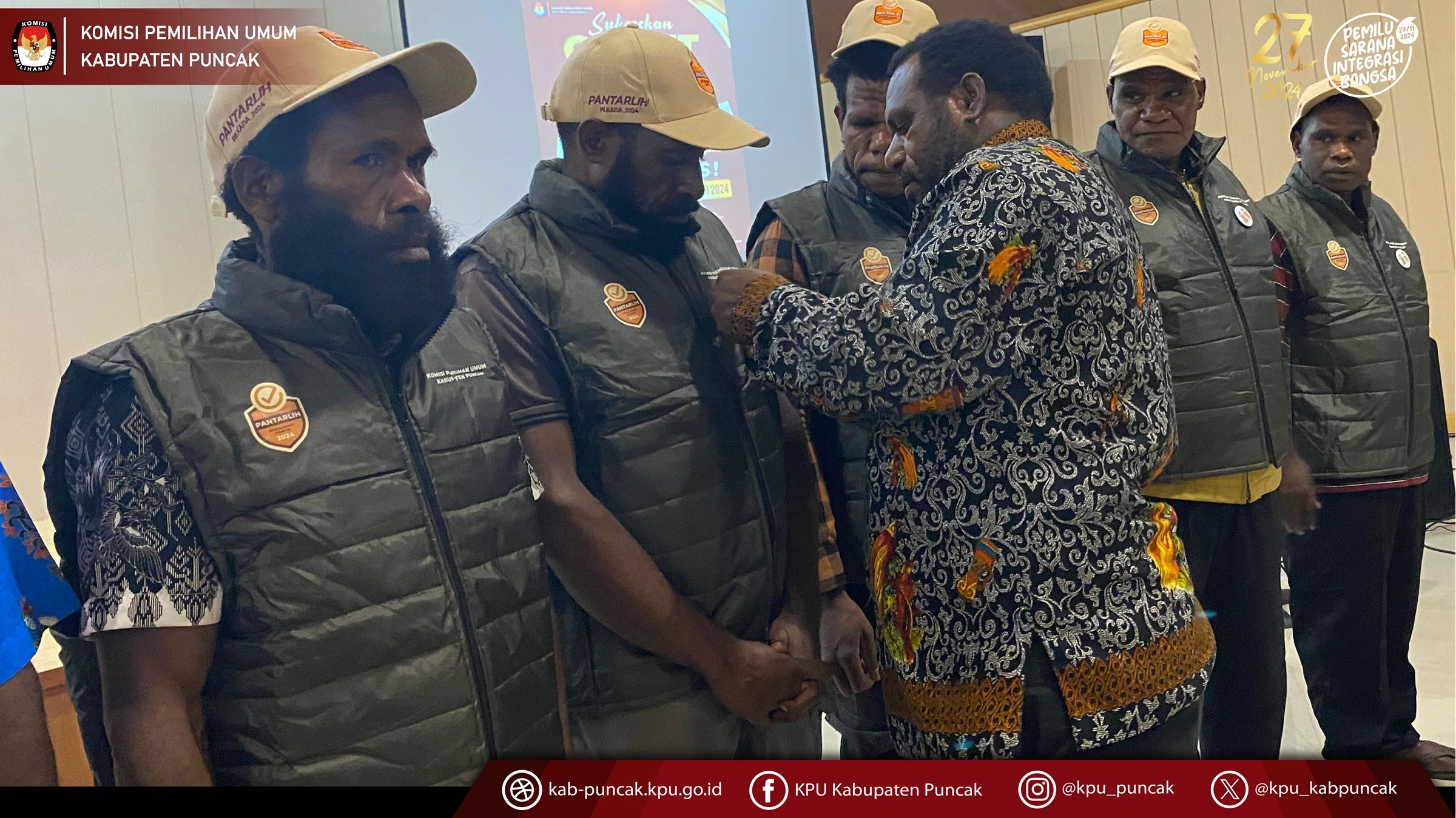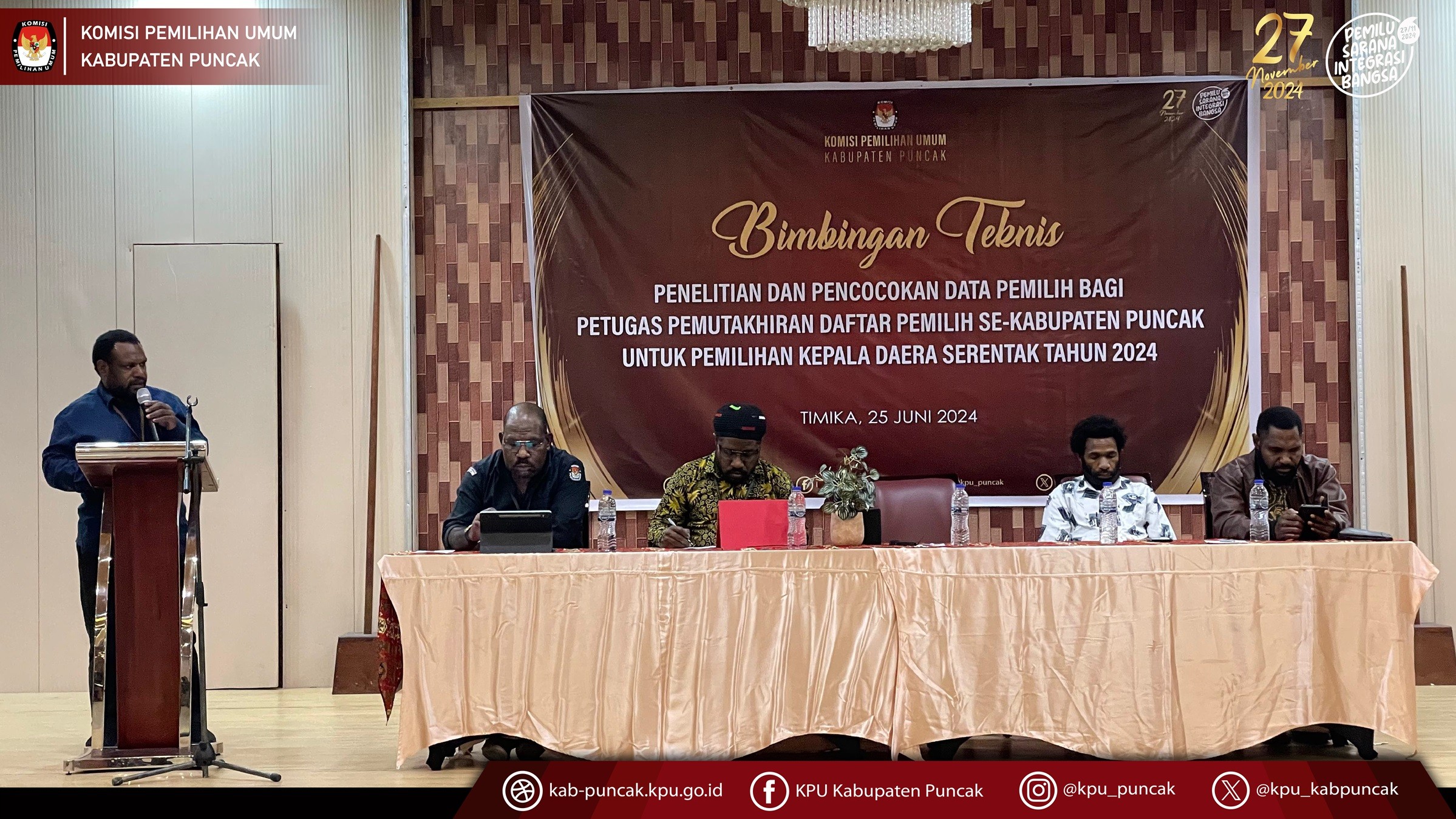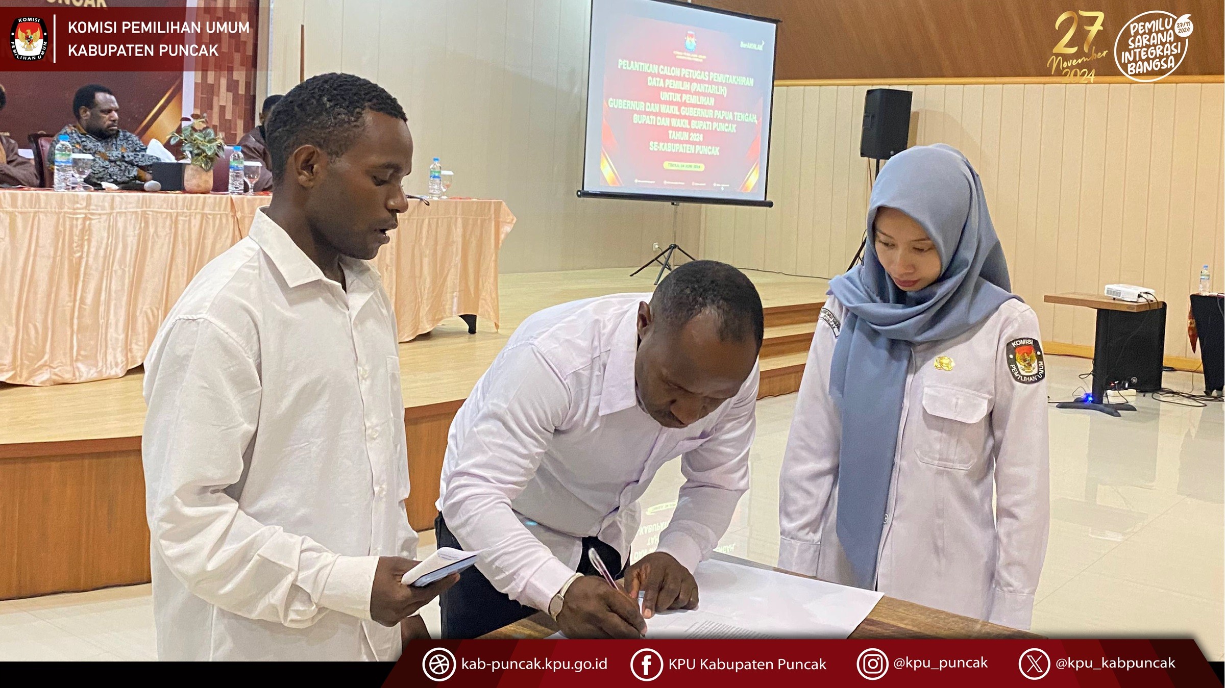 Senin, 24 juni 2024, Komisi Pemilihan Umum Kabupaten Puncak melantik Petugas Pemutakhiran Data Pemilih (PANTARLIH) di seluruh kabupaten Puncak dan Dilanjutkan dengan memberikan bimbingan teknis tentang penelitian dan pencocokan data pemilih pada hari selasa, 25 Juni 2024. dalam kegiata ini hadir juga Anggota Bawaslu Kabupaten Puncak.